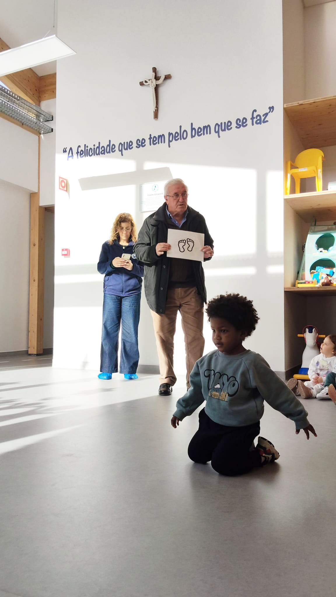 Durante este período, os meninos da Creche Caracol receberam a visita do Presidente do Centro de Assistência Paroquial de Amora, Padre Geraldo Finatto, proporcionando um momento de proximidade e partilha muito especial.